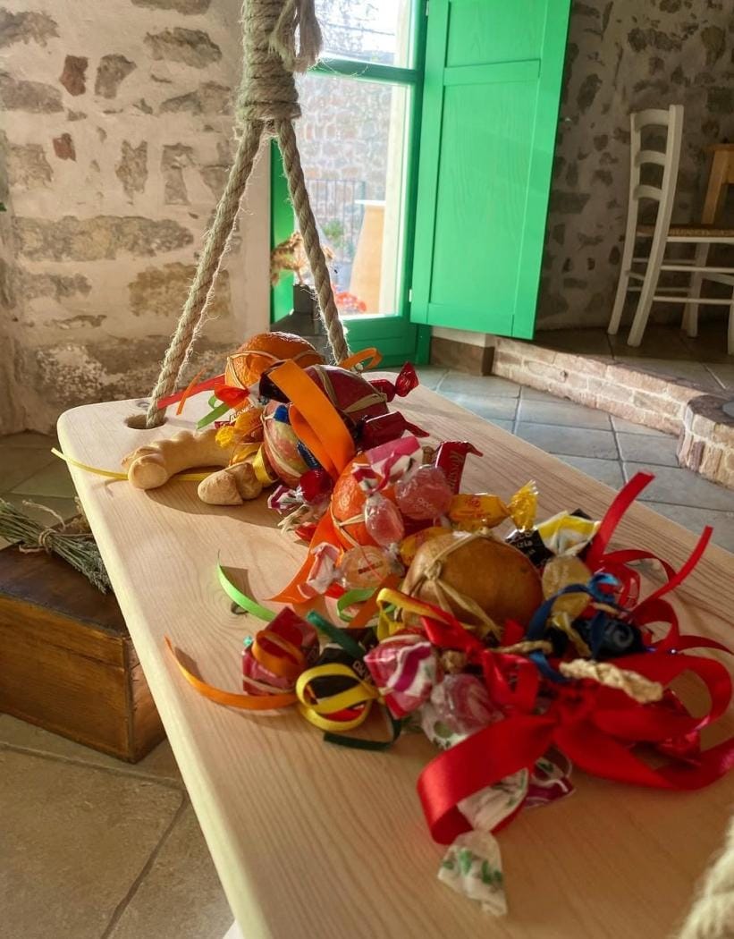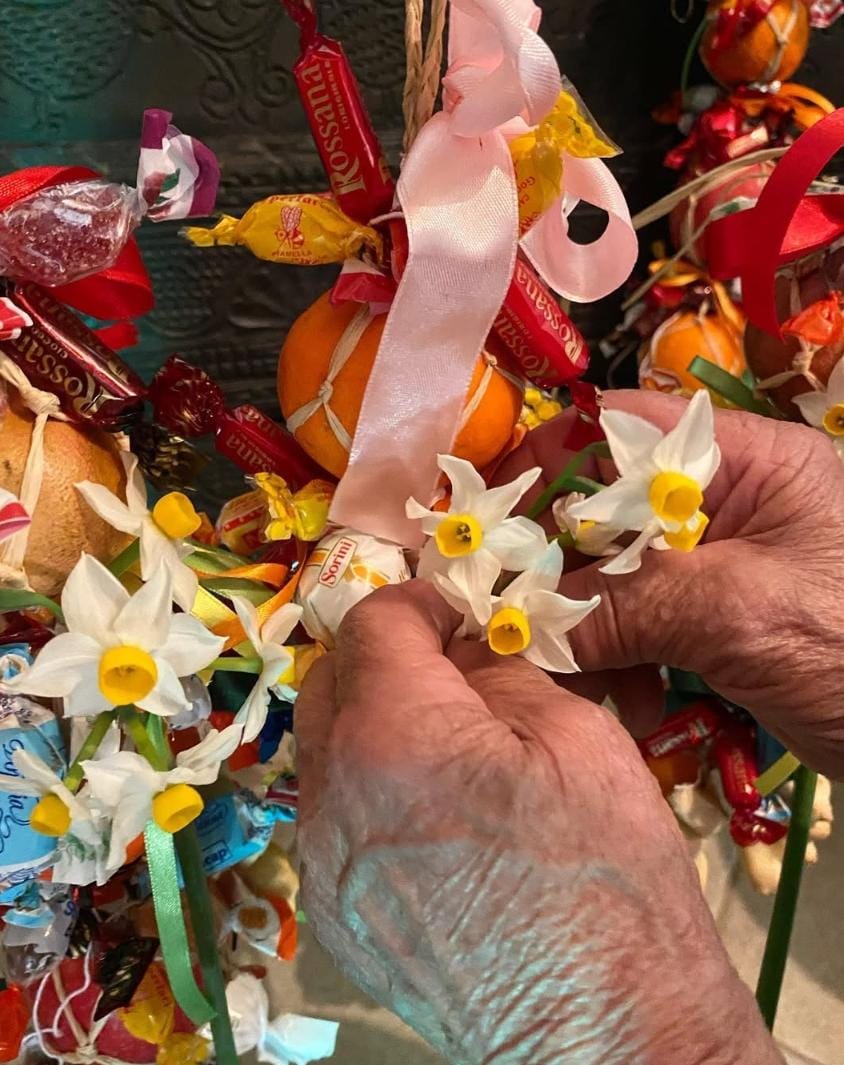 Questi oggetti identitari, noti come is sessineddus, traggono il nome dal “sessini”, lo scirpo palustre che viene lavorato con maestria attorno a una struttura di frutti e arricchito da elementi simbolici e alimentari. Portati in processione e benedetti, questi piccoli capolavori di architettura vegetale vengono poi regalati, diventando messaggeri di un linguaggio culturale che per i gergesi non ha eguali.