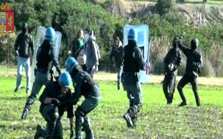 Secondo le ricostruzioni della Questura, messe insieme oltre alle indagini grazie anche a video e foto scattate quel giorno, durante la manifestazione un centinaio di persone si sarebbe staccato dal corteo principale per disporsi lungo le recinzioni del poligono e tagliare le reti metalliche con delle tronchesine. Creati quattro grossi varchi gli antagonisti si sono trovati di fronte le Forze dell’Ordine che ne hanno bloccato l’accesso. Da quel momento sono nati degli scontri con lancio di pietre contro gli agenti e l’opposizione di lastre di plexiglass cucite su uno striscione di tela all’affrontamento della polizia. In quegli scontri sono rimasti feriti dieci agenti, tra cui anche il vice questore di Cagliari Ferdinando Rossi.