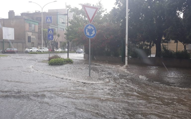 Il nubifragio è arrivato anche in città con strade allagate e tombini saltati. In viale Elmas un fiume d'acqua ha invaso le carreggiate.