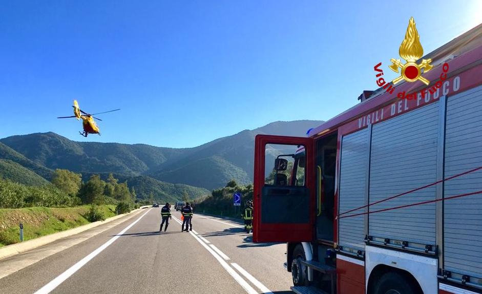 Un ciclista che stava percorrendo la statale è stato investito da un’auto al km 45,100. Un elicottero della flotta regionale è stato inviato sul posto, ha caricato il ciclista e lo ha trasportato d’urgenza al pronto soccorso. Al momento non si hanno notizie precise sulle sue condizioni.