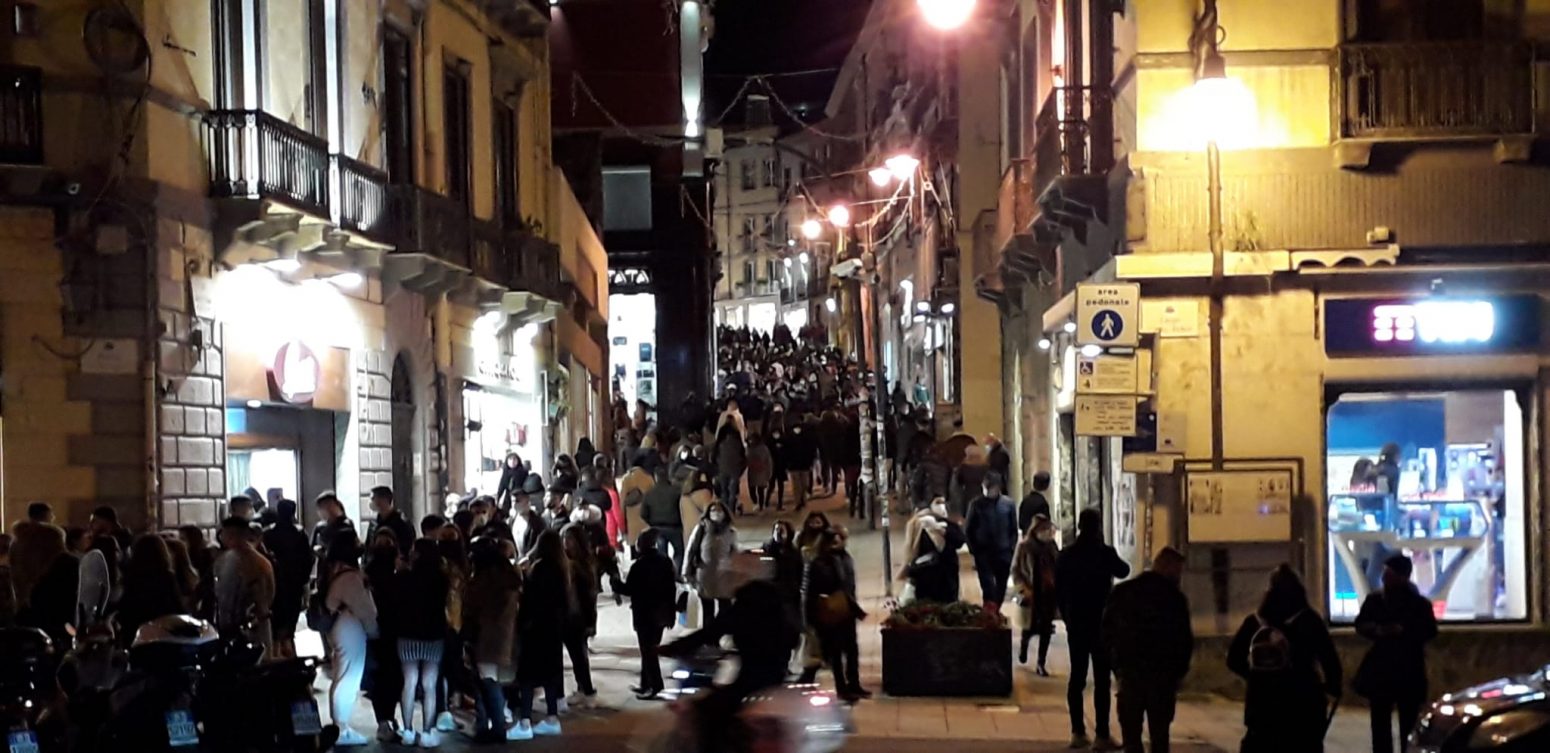 Sabato 23 gennaio, alle porte di una domenica tinta di arancione per tutta la Sardegna, i ristoranti, i bar, le pizzerie vengono chiuse alle ore 18:00, centri commerciali chiusi così come teatri, cinema, palestre e un’infinità di altre attività. Le strade del centro pullulano di persone, quelle stesse che in condizioni normali si sarebbero divise in spazi differenti della città e invece così si ritrovano tutte ammassate nello stesso luogo. Il Bastione, illuminato, diventa il ritrovo per i nostri ragazzi, quelli che non vanno a scuola perché i mezzi pubblici non consentono il distanziamento, quelli da proteggere dai contagi, quelli della DAD… Uno spettacolo impietoso, tantissimi giovani ammassati, senza mascherina che trascorrono il tempo nell’unico luogo rimasto aperto e incontrollato.