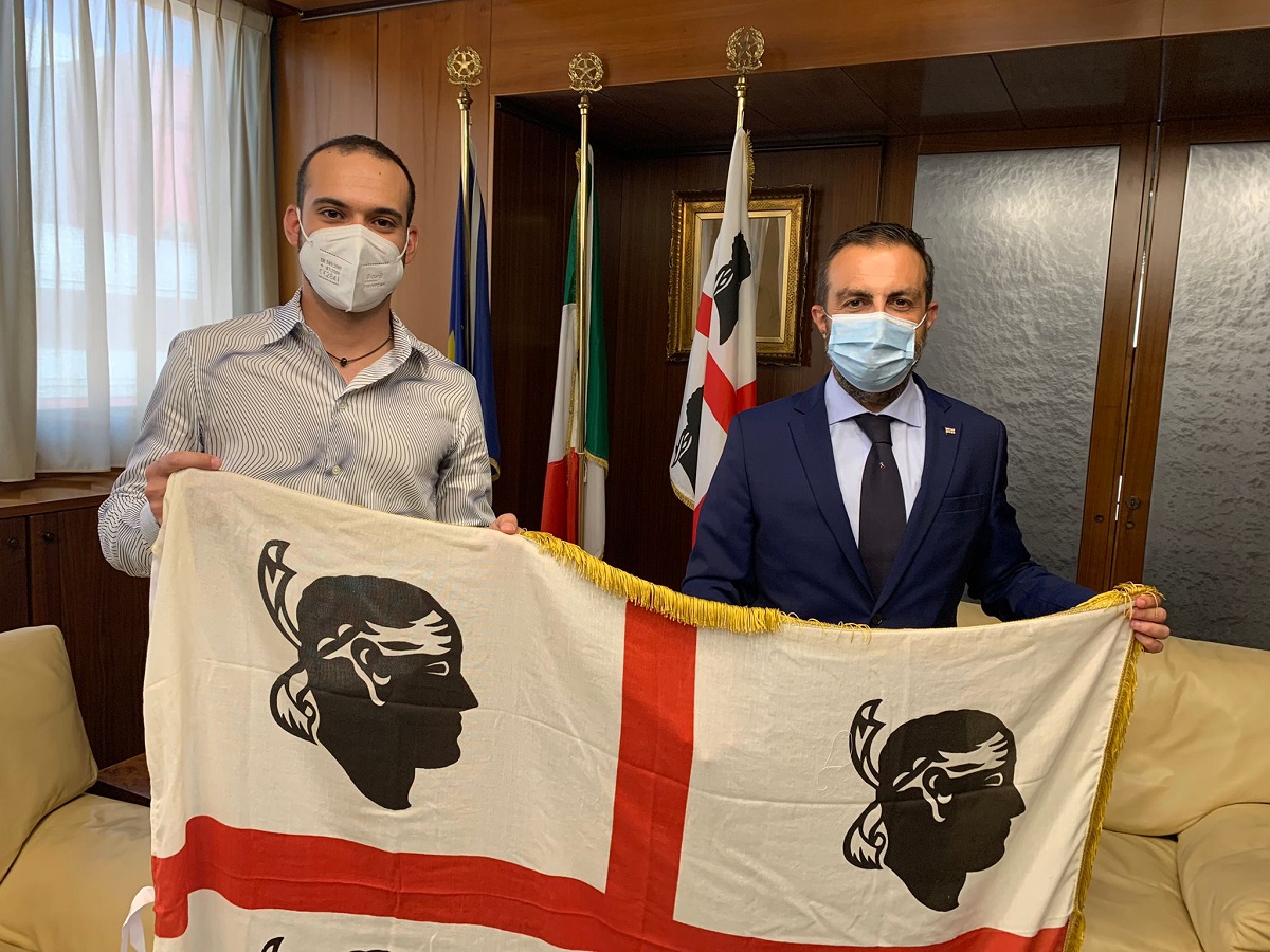 Il Presidente Pais ha donato al maestro la bandiera dei Quattro Mori. Il giovane musicista ha detto: «La porterò sempre con me».
