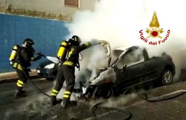 Intervento dei Vigili del Fuoco del Comando alle 14:30 circa per l’incendio di un’autovettura alimentata a GPL e benzina, in transito in via Anglona nel quartiere di Is Mirrionis a Cagliari.