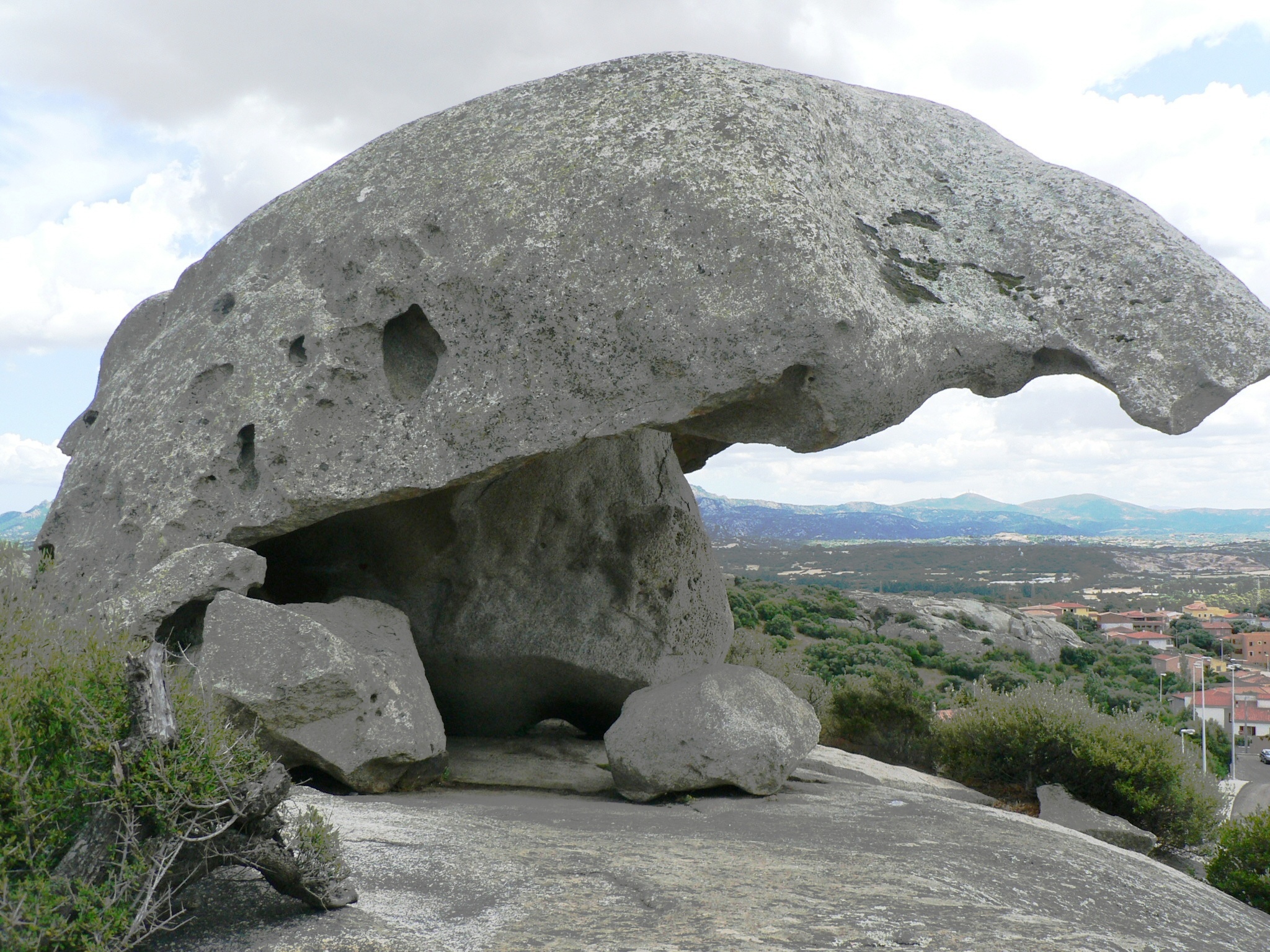 Questo enorme blocco di granito plasmato e modellato dalla natura, ha la forma di un gigantesco fungo. Non è solo una meraviglia naturale, perché la roccia fu frequentata sin dalla preistoria come riparo sottoroccia: qui infatti sono stati trovati materiali datati dal Neolitico (3500 a.C.) sino al periodo nuragico; nei pressi della roccia è stato anche individuato un villaggio nuragico.