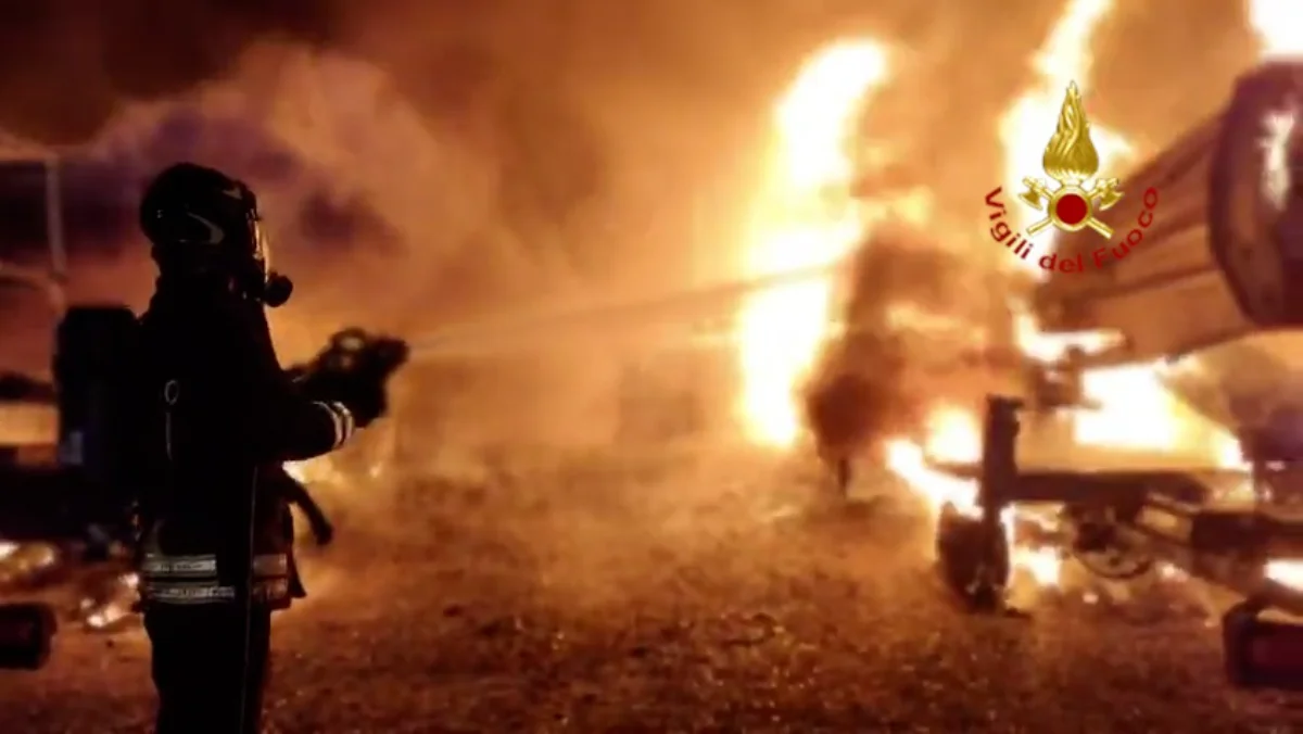 Le operazioni di spegnimento sono state lunghe e complesse: dopo circa due ore di intenso lavoro, i Vigili del fuoco sono riusciti a domare le fiamme e a mettere in sicurezza l’area, evitando che l’incendio si propagasse ad altri mezzi e a un capannone adiacente.