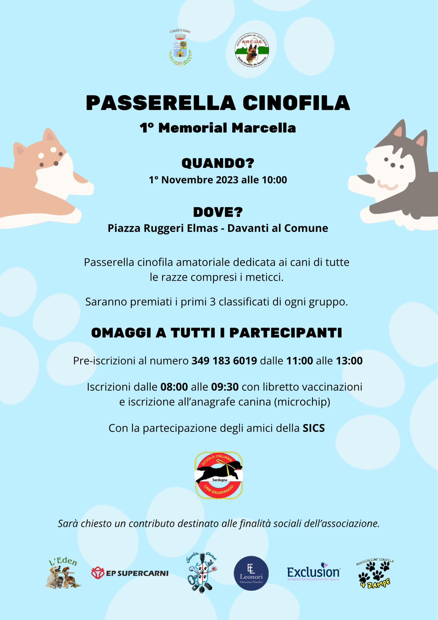 Si terrà l’1 novembre alle 10 di fronte alla sede comunale di Elmas la passerella cinofila dedicata ai cani di razza e ai meticci.