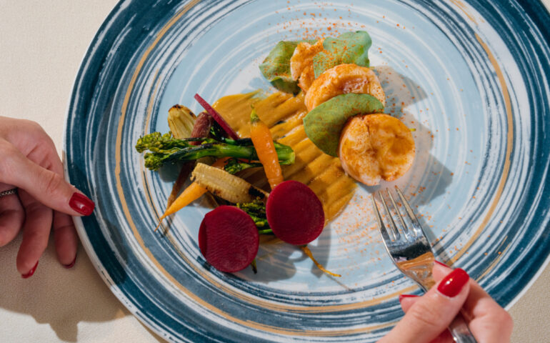 La vera magia si manifesta con l’arrivo dell’aragosta sous vide. Tenerissima e perfettamente condita, ogni boccone si scioglie in bocca, esaltato da una raffinata salsa d’ostriche e accompagnato da verdure croccanti che aggiungono una piacevole consistenza.