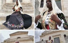 Nata e cresciuta in Sardegna, Kary Khouma posa con l’abito tradizionale di Codrongianus. Sul web piovono i commenti razzisti