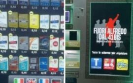 In varie parti d’Italia e anche nella nostra Isola sul video dei distributori di sigarette, pare tutti della stessa marca, sono comparse scritte come “Fuori Alfredo dal 41bis”. Non solo: anche il prezzo dei pacchetti è stato ritoccato, scendendo a