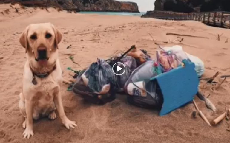 (VIDEO) Farah, lo splendido labrador che ripulisce Cala Domestica insieme al suo padrone