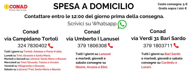 Conad, in questo momento particolare, va incontro ai cittadini ogliastrini consentendo loro di ricevere la spesa a domicilio.