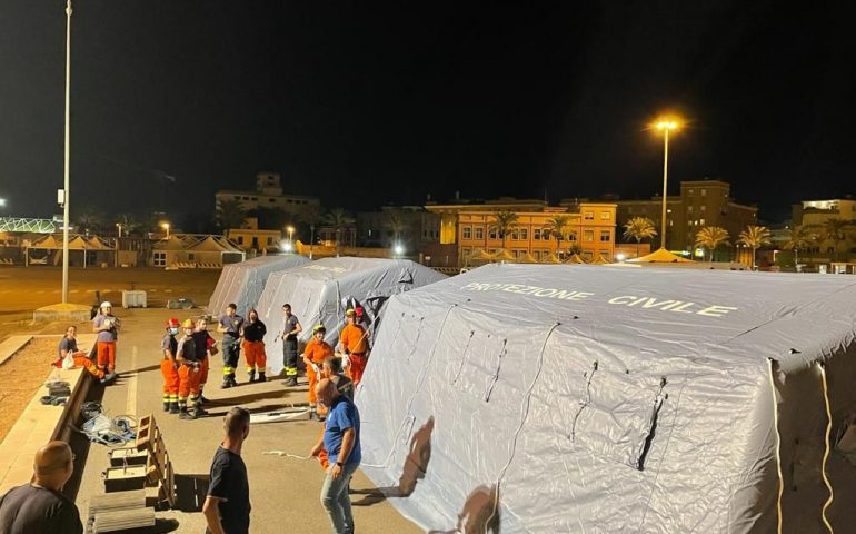 La Protezione civile regionale è stata attivata dal Presidente per garantire il supporto allo sbarco e alla prima accoglienza. Il modulo logistico è composto da tre tende e una tensostruttura, oltre a due tende della Croce Rossa, necessarie per le verifiche mediche e per l’effettuazione dei tamponi. Per l’allestimento sono state attivate diverse organizzazioni di volontariato con 18 volontari che hanno operato fino a tarda notte per il montaggio del modulo.