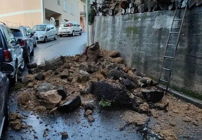 Il maltempo crea disagi in Ogliastra. A Villagrande i massi franano nelle strade