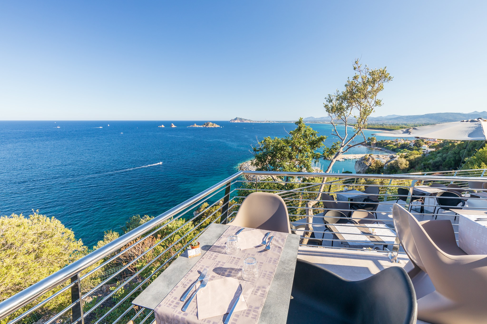 Dalla terrazza del locale si resta affascinati dallo spettacolo della vista che parte dal porticciolo e si staglia su tutto il golfo di Arbatax. Ammirerete l’arcipelago con la perla dell’Isolotto d’Ogliastra che vi sembrerà di dominare, mentre le vele bianche solcano il suggestivo specchio d’acqua della zona.