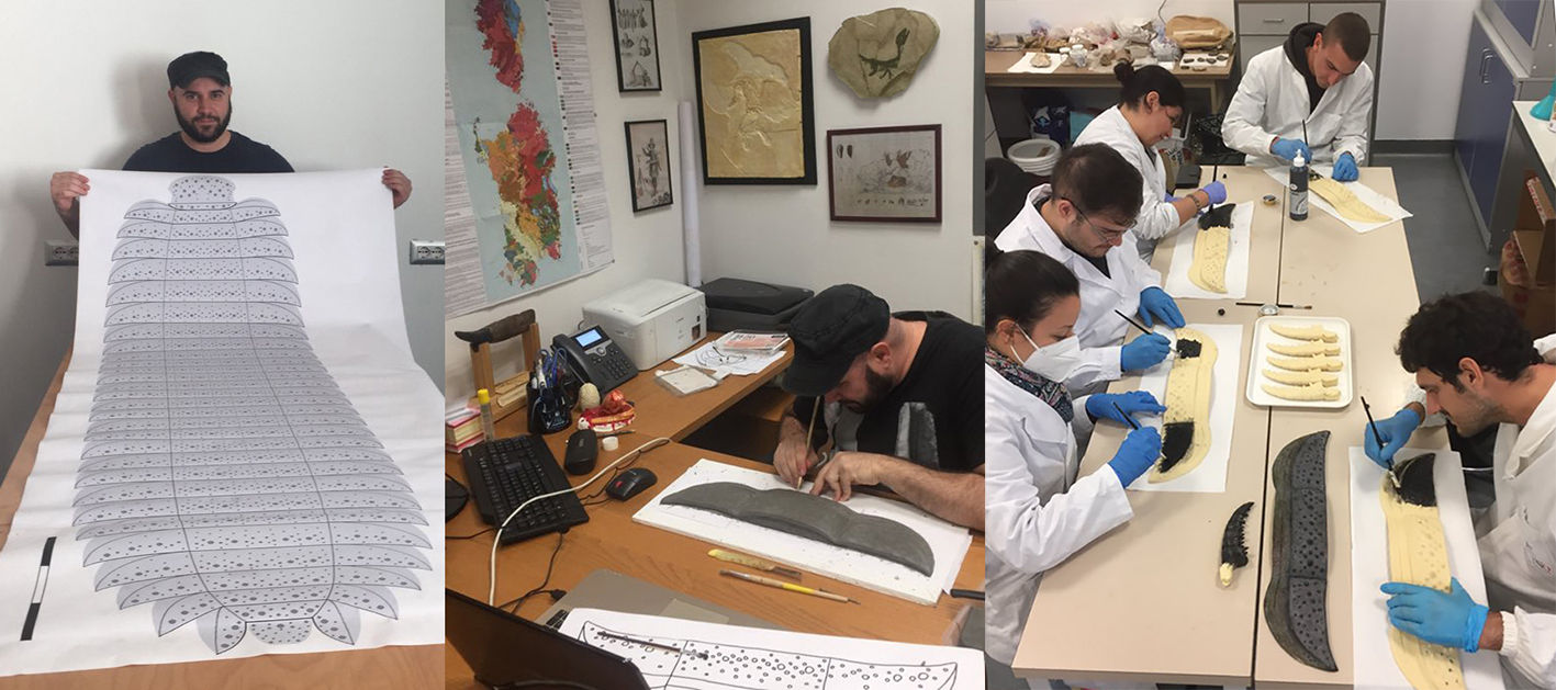 Nelle ultime settimane, Zoboli si è però imbarcato in un progetto particolare, dispendioso in termini di tempi di realizzazione ma incredibile: «Voglio creare un modello in scala reale del gigantesco millepiedi Arthropleura armata, il più grande artropode terrestre ad oggi noto che poteva raggiungere e superare i 2 metri di lunghezza. I fossili di questo “mostro” sono noti in diversi paesi europei e lo scorso anno abbiamo descritto il primo fossile di questo animale ritrovato in Sardegna. Ho iniziato a realizzarlo per il corso di museologia ma per portarlo a termine serviranno molte ore di lavoro che vanno ben oltre quelle a disposizione per il corso. Spero che un giorno questo modello possa essere terminato ed esposto al pubblico.»