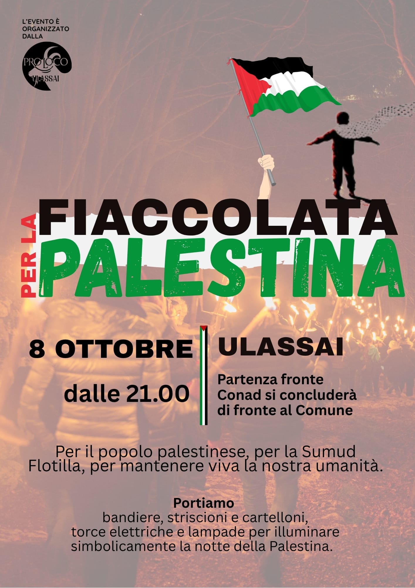 Ulassai in cammino per la Palestina: l’8 ottobre fiaccolata di pace e resistenza