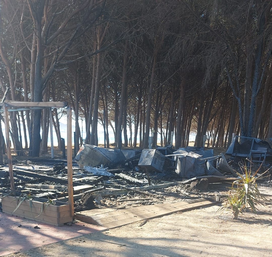 (FOTO) Incendio nella notte a Lotzorai: distrutto il chiosco “La Riva Bianca”
